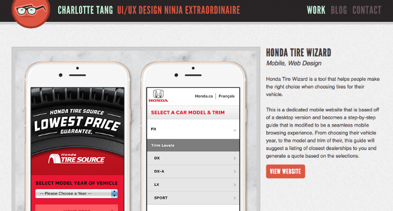 Not only does Charlotte Tang have a great-looking website, but she gives an informative description with each design. They include a link to the website so you can see what it looks like. You can also get a feel for the user experience. These are all things that clients want to see before they hire you.