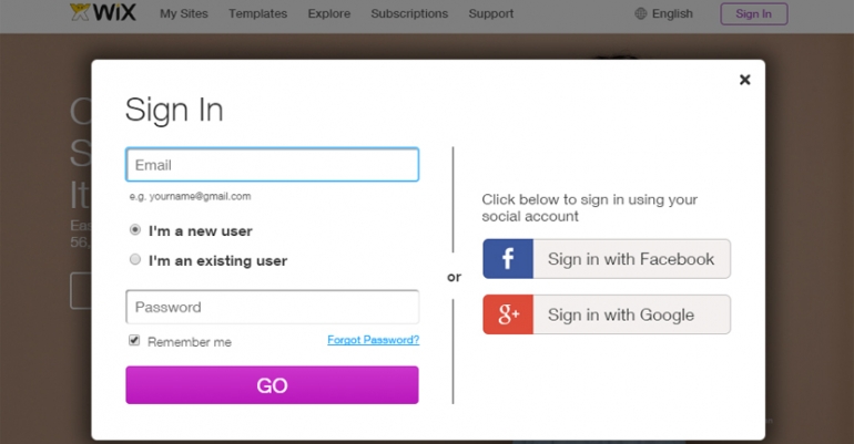 Go to the Wix website.