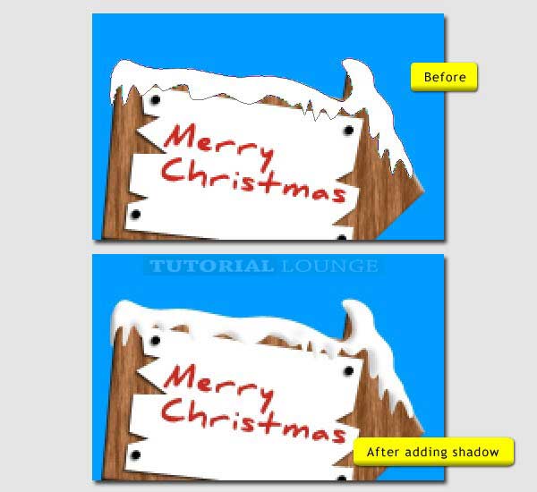 Hit "Cmd/Ctrl + Shift + N" to create a new layer and set to "Multiply". And make sure this new layer is in front of the road layer, and behind the Santa, sign pos and additional ice. Then use Brush Tool (B) with low hardness to paint the soft black shadow.