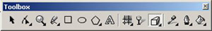 To begin we will draw three rectangles – these will be the tops of buildings seen from above. For this, use the "Rectangle Tool", which is located in the "Toolbox" panel.
