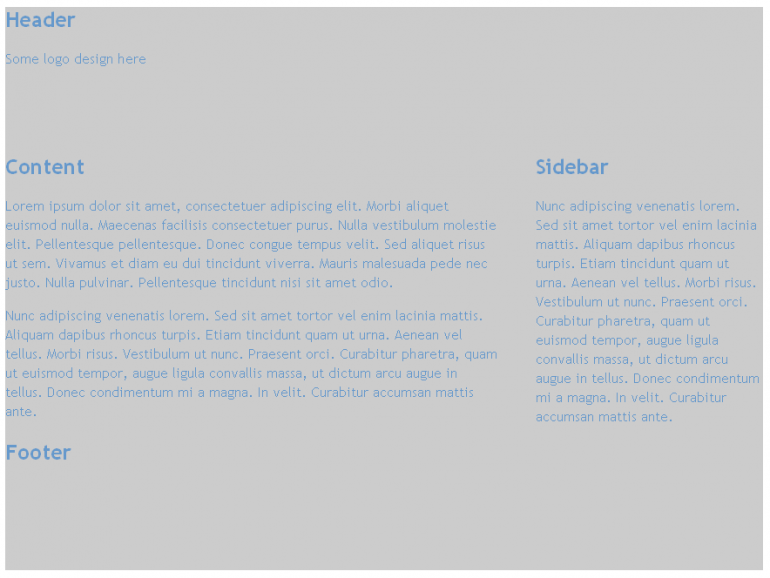 Let's create a basic HTML structure of our template. As you can see below, the template consists of four blocks: the header, content , sidebar, and the footer.