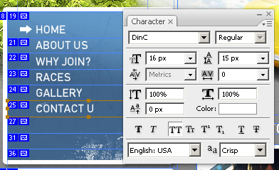After that we should customize the "Join Our Club" and "Go to Gallery" buttons. With the help of Horizontal Type Tool edit the button text. Then highlight the button slice (mouse left click + CTRL), go to "File" -> Save for Web & Devices and replace the file in the "Images" folder.